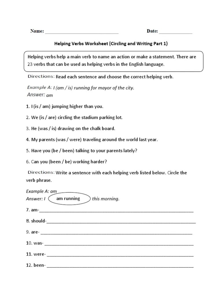 Helping Verbs Worksheet 1St Grade - Which Sentence Contains A Helping Verb :